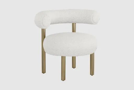 Bordeaux Cream White Boucle Accent Chair adds luxurious texture and modern elegance to your living room space. Its plush cream boucle upholstery pairs beautifully with a brushed brass frame, creating a stylish accent chair and decorative element for any room.