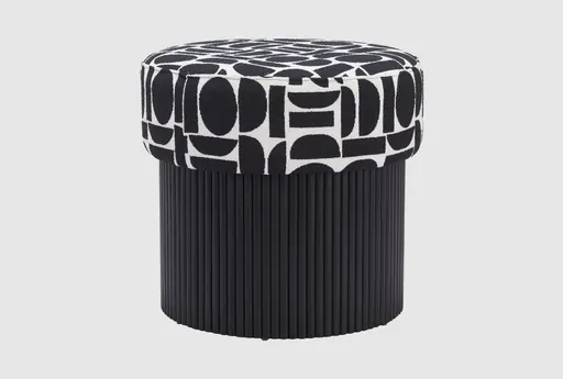 The Boto Black & White Round Plush Fabric & Wood Patterned Storage Ottoman is a stylish and functional addition to any living room. Its modern design and black and white color scheme make it a versatile piece that can complement various decor styles. The ottoman features a soft plush fabric and a sturdy plywood construction, ensuring both comfort and durability.