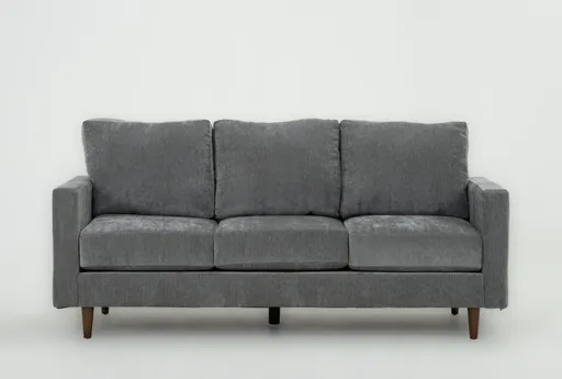 The Bradley II Charcoal 81" Sofa brings a modern, tailored look to the living room with a compact profile that fits both apartment and family spaces. Upholstered in 100% polyester chenille fabric, it pairs a neat silhouette with three seat cushions for everyday comfort. Medium firm seating gives balanced support so long conversations or movie nights feel comfortable without losing shape.