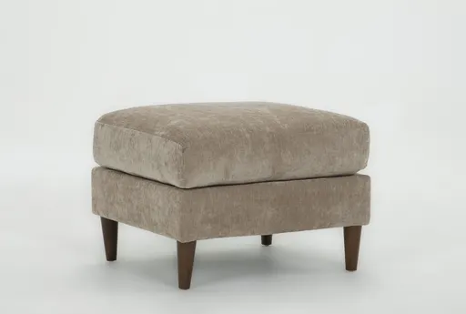 Bradley II Khaki Ottoman is a modern, rectangular ottoman designed to be a versatile anchor in your living room. Upholstered in khaki chenille fabric with 100% polyester content, it offers a medium firm cushion that supports sitting or putting your feet up without feeling too soft. Tapered legs in a warm brown finish lift the piece for an open, airy profile that pairs easily with sofas and chairs. Use it for extra seating, a footrest, or as an informal coffee table when paired with a tray.
