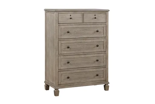 Dovetail joinery and side metal glides deliver smooth, long-lasting drawer operation backed by durable hardware and strong structural integrity. A block base with tapered legs gives a sturdy stance and a light visual presence so the chest feels tall without overwhelming a room. Place the Brayden Grey Wood 6-Drawer Chest in a guest room, primary bedroom, or dorm to create instant storage organization and surface display for lamps and accessories.