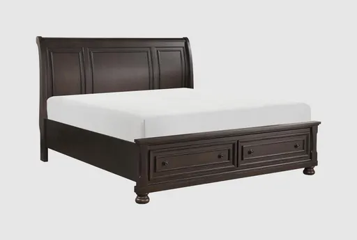 Introducing the Brenna Queen Wood Platform Storage Sleigh Bed, a perfect blend of casual and traditional styles. This queen-sized bed, finished in a sophisticated grayish brown, is crafted from high-quality wood, ensuring durability and timeless appeal. The bed features a sleigh design with practical storage solutions, making it an ideal addition to any bedroom.