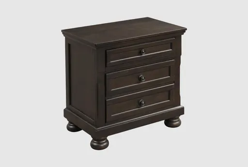 The Brenna Brown Wood 2-Drawer Nightstand is a perfect addition to your bedroom, offering both style and functionality. Its casual design and greyish brown finish make it a versatile piece that complements various decor styles. The spindle legs add a touch of traditional charm, making it a timeless choice for any sleeping room.
