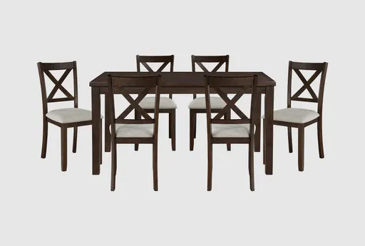 The Bria 60" Brown Wood Rectangle Dining Set for 6 is a perfect addition to your dining room. This set features a dark cherry finish that adds a touch of warmth and sophistication to your space. The table and chairs are made from a combination of wood and engineered wood, ensuring durability and longevity.