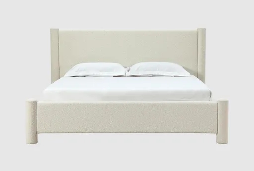 Experience the perfect blend of modern and mid-century design with the Brianna White King Upholstered Platform Bed. This elegant bed, in a soft cottage cheese color, offers a sophisticated touch to any bedroom. Crafted from high-quality polyester fabric, it ensures both comfort and durability for a restful night's sleep.