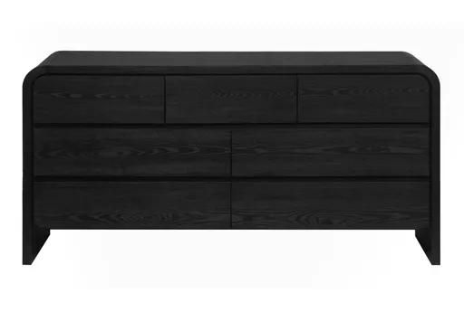 The Briar Black 7-Drawer Dresser combines modern design with Scandinavian influences, making it a stylish and functional addition to any bedroom. Crafted from high-quality Meranti wood and veneer, this dresser features waterfall edges and rounded rectangles for a sleek, contemporary look. The wire-brushed surfaces add texture and depth, while the smooth drawer operation ensures ease of use.