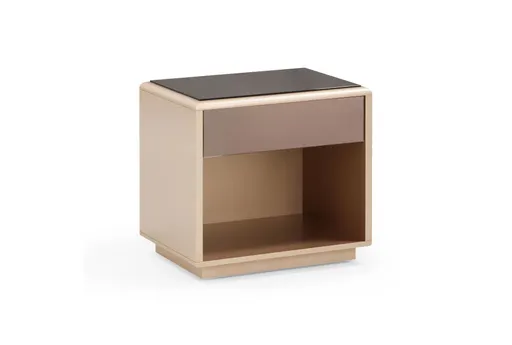 The Briella Mirrored 1-Drawer Nightstand is a stylish and functional addition to any modern bedroom. Its taupe color and MDF wood construction provide a sleek and durable design. The nightstand features a single drawer with beveled glass on the top and front, adding a touch of elegance to your space.