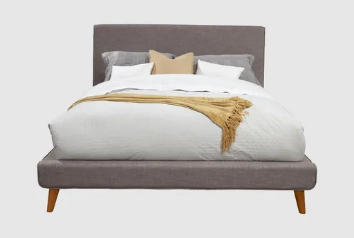 Experience the perfect blend of style and comfort with the Brittney Dark Grey Fabric Queen Upholstered Platform Bed. This modern bed features a dark grey polyester upholstery that adds a touch of sophistication to any bedroom. Designed with both aesthetics and functionality in mind, the platform bed eliminates the need for a box spring, providing a streamlined look.