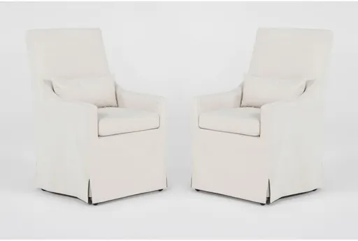 Coming to a dining room near you: our casually elegant Broadway arm chair with casters. The classic slipcovered design migrates from the living room, so you can enjoy this relaxed yet tailored favorite during breakfast, lunch and dinner. It even includes a lumbar pillow for comfortable back support.