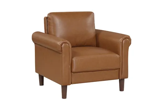 Enhance your living room with the Bronagh Brown Chair, designed to provide both comfort and style. Its casual design, paired with its rich brown color, makes it a versatile addition to any space. The chair features a plush cushion and rolled arms, ensuring a cozy seating experience.