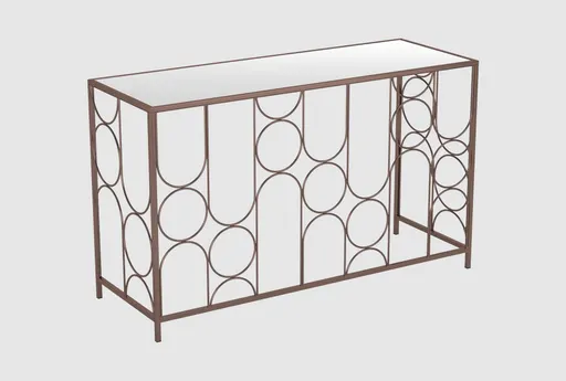 This 50" Bronze + Glass Console Table is perfect for adding a touch of modern style to your entryway. Designed with a sleek rectangle shape, it features a stunning combination of bronze and glass materials that will enhance any space.