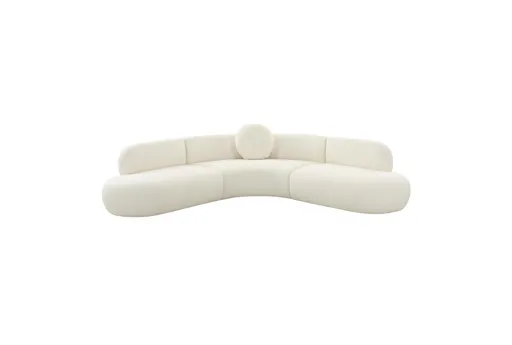 The Broohah Cream White Boucle Fabric 100" Curved Sectional offers modern sophistication and comfort for your living room. With its unique curved design and tight back, this sectional is perfect for creating a stylish and cozy atmosphere.