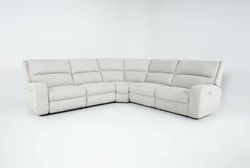 Enhance your living room with the Brooks Grey 5 Piece Power Zero Gravity Modular Reclining Sectional. This casual and stylish sectional features adjustable headrests and a left-facing orientation, making it a perfect fit for your home. Upholstered in 100% polyester Haven Newsprint fabric, it combines comfort and durability.
