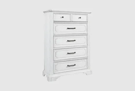 The Brookstone White Wood 6-Drawer Chest adds a touch of farmhouse charm to your bedroom with its soft, neutral color and classic design. Crafted from American poplar solids and white oak veneer, this chest is both durable and stylish. The white finish complements any decor, making it a versatile addition to your sleeping space.