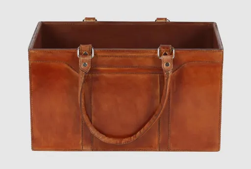 This 16" Brown Genuine Leather Square Magazine Holder Basket is a rustic style accessory, designed with rugged beauty and an earthy charm. Crafted with real leather, it carries a smooth brown exterior and inner lining, providing a wholesome atmosphere in any space.