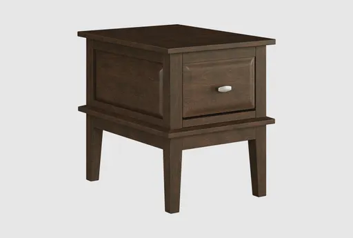 The 18" Brown 2 Drawer End Table is a perfect blend of traditional and classic styles, making it a timeless addition to any living space. Crafted from wood with a rich brown cherry finish, this rectangular end table features a dovetail drawer with ball bearing glides and satin nickel tone knobs, ensuring both functionality and elegance.