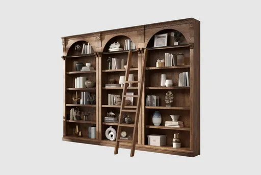 The Burke Brown 94" Set of 3 Traditional Arched Bookcases is the perfect addition to any office or study. With its rich brown finish and natural wood construction, it exudes a timeless charm. The arched design and included wooden ladder add both functionality and a touch of classic style.