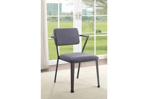 Caddo Gunmetal Upholstered Side Chair Set Of 2 brings a touch of glam to the dining room with a gunmetal-finish metal frame and comfortable fabric upholstery that’s ready for everyday meals. The iron frame and slim arms keep the silhouette light while providing sturdy support, and the padded seat and back make longer dinners more comfortable. Sold as a set of 2, these chairs are easy to pair with modern dining tables or use as extra seating in a breakfast nook.