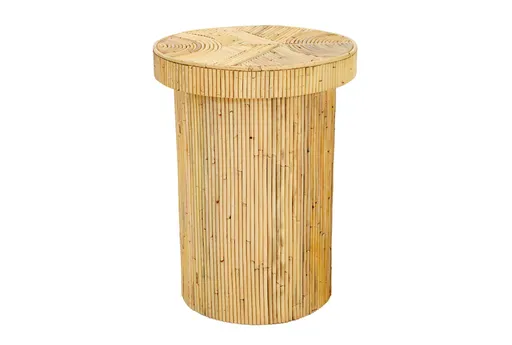 The Cadia Wood Rattan Round End Table is a perfect addition to your living room. Its modern design and natural color blend seamlessly with any decor. The woven rattan and wood materials create a stylish and functional piece.
