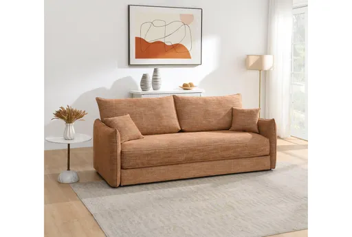The Cadie Mocha Chenille Sleeper Sofa brings a twin-size pull-out bed to your living room without taking over the space. Upholstered in soft mocha chenille with polyester-blend cushions, it balances everyday seating comfort with guest-ready functionality. Its frame combines wood, plywood and metal components while the smooth pull-out mechanism sets up a comfy sleep surface quickly for overnight visitors.