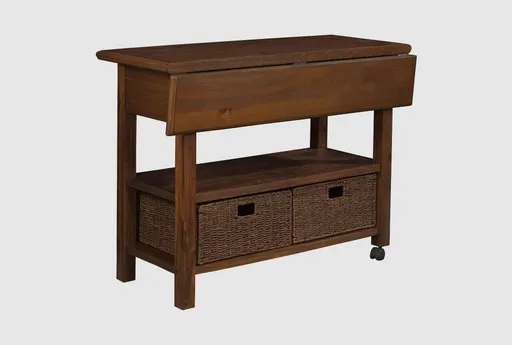 Introducing the 36" Cady Brown Wood Kitchen Cart, a versatile addition to your kitchen or dining room. This cart features an antique cappuccino finish and provides ample storage with its shelves and drawers. The drop leaf design allows for extra workspace when needed, making it perfect for food prep and serving.