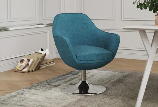 The Caisson Blue Swivel Accent Chair is a stylish and modern addition to any room. Its blue fabric and polished chrome base create a sleek and contemporary look. The chair is designed for both comfort and functionality, making it a perfect choice for any living space.