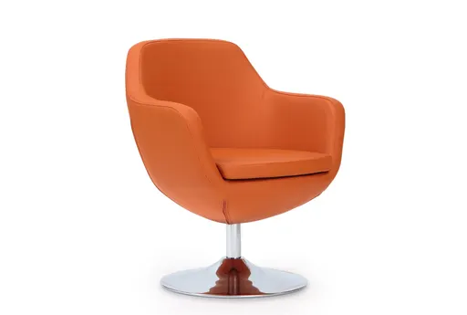 The Caisson Orange Swivel Accent Chair brings a bright, modern focal point to the living room with its rounded silhouette and orange faux leather upholstery. The padded seat and curved back offer comfortable support, while the polished metal pedestal base lets you swivel easily to join conversations or follow the action in the room. Compact yet inviting, this chair fits nicely beside a sofa or in a cozy reading nook for an instant style update.
