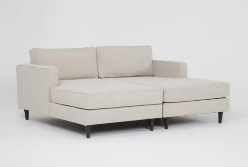 Introducing the Calais III Linen 79" Double Chaise Lounge, a perfect addition to your living room. This modern chaise lounge features a sleek design with track arms and tapered legs, providing both style and comfort. Upholstered in linen-colored fabric, it offers a neutral and soft color palette that complements any decor.