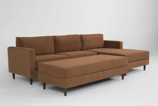 The Calais III Rust 113" 2 Piece Sectional with Right Arm Facing Chaise & Cocktail Ottoman offers a stylish and versatile seating solution for your living room. This modern sectional is upholstered in 100% polyester fabric, providing durability and comfort. The included cocktail ottoman enhances functionality, making it perfect for relaxing or entertaining guests.