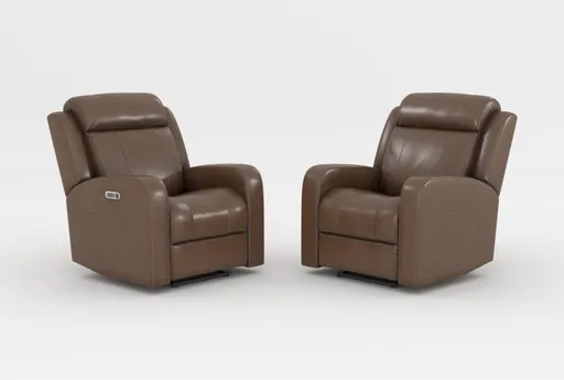 Made exclusively for Living Spaces by Flexsteel, our Caleb leather zero gravity power recliner is the design you've been dreaming about. From the construction to the materials, every element delivers the highest quality and comfort. Enjoy the superior durability and support of Flexsteel's patented Blue Steel Spring™ seat system, as well as a seat cushion featuring memory foam. There's top grain leather seating for a touch of style and luxury, plus power reclining and a power headrest, so you can reach a multitude of positions, including zero gravity, which improves circulation and relieves pressure, among other health benefits. Finally, a USB port ensures convenient charging for your device.
