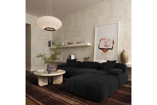 Sink into the Calliope Black Vegan Shearling 4 Piece Modular Sectional, a modern modular sofa upholstered in black vegan shearling fabric that balances soft texture with everyday durability. Its four-piece design lets you arrange the sections for a reversible layout that suits open-plan living, while medium firm cushions deliver supportive seating for lounging or entertaining. Eucalyptus legs add a warm, sturdy base so the sectional feels grounded in your living room and adapts to your changing needs.