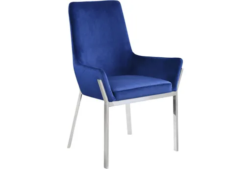 Cam Blue Velvet Side Chair Set Of 2 brings a glam touch to your dining room with a plush velvet seat supported by a slim metal frame. The chair is upholstered in velvet with foam cushioning over a plywood base for comfortable meals and relaxed conversation. Tapered metal legs add brightness and reliable support, while the gently curved back and subtle arm supports offer comfort without taking up extra space. This pair is an easy way to refresh a table or add stylish extra seating for guests.