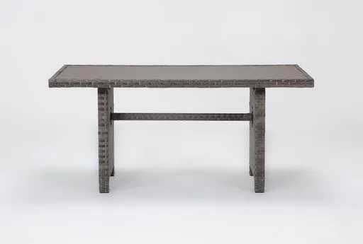 The Cannon Grey Wicker Outdoor Banquette Table brings casual outdoor dining to life with a textured, handwoven surface and a greige woven finish that blends grey and beige tones. Its rectangular trestle base pairs a sturdy metal frame with woven wicker for a modern yet relaxed profile that fits patios, porches, and covered outdoor spaces. Designed to seat six, the horizontal layout creates a spacious surface for family meals and entertaining without feeling oversized. The overall look is intentionally low-visual and coastal-friendly, so it complements neutral palettes and modern outdoor decor.