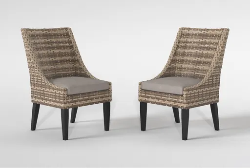 Enhance your outdoor dining experience with the Capri II Wicker Outdoor Dining Chairs Set Of 2. These armless dining chairs are designed for casual gatherings and offer a comfortable seating solution with their included cushions. The natural resin wicker and aluminum frame ensure durability and resistance to various weather conditions.
