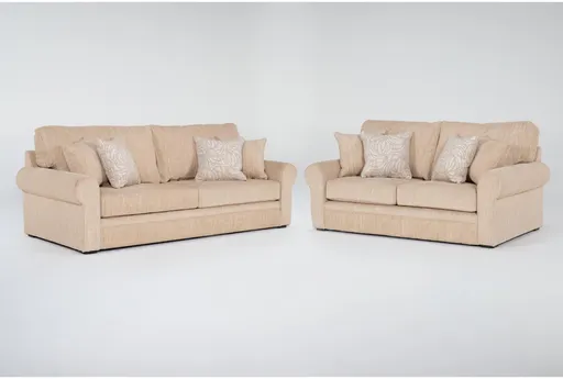 The Carina Wicker Beige Fabric 2 Piece Queen Memory Foam Sleeper Sofa Bed & Condo Sofa Set brings both comfort and versatility to your living room. This traditional set includes a sofa and loveseat, offering ample seating and a queen-sized memory foam sleeper for overnight guests. The natural beige fabric is made of 100% polyester, ensuring durability and a soft touch.