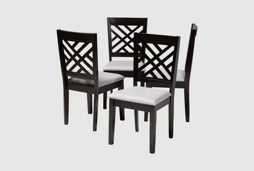 Enhance your dining experience with the Caroline Gray Fabric Upholstered & Espresso Brown Wood Dining Chair Set Of 4. These modern and contemporary chairs feature a sophisticated gray fabric upholstery and a rich espresso brown finish, making them a perfect addition to any dining space. Constructed from durable rubberwood, these chairs are designed to provide both comfort and style.