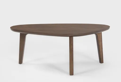 Casey Walnut Triangle Coffee Table brings a warm, modern presence to the living room with a distinctive triangular silhouette and gently rounded corners. The walnut veneer top sits on an engineered core and is supported by solid rubberwood tapered legs for stable everyday use and natural warmth. Its compact footprint and refined proportions make it easy to position beside sofas and sectionals, giving a functional surface that stands up to high-traffic family life.