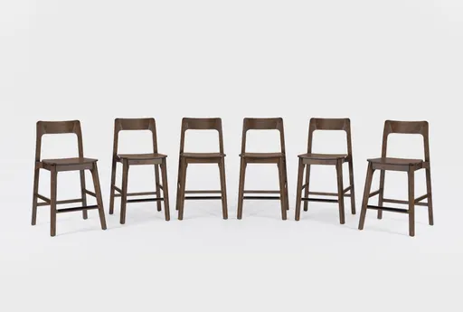 Casey Walnut Wood Counter Height Stool Set Of 6 offers modern seating for the dining room with armless, counter-height stools that include a supportive backrest for everyday comfort. The stools pair walnut veneer with solid rubberwood elements to deliver durable support and warm, dark-natural tones that fit kitchen islands and breakfast bars. Tapered conical legs give the set a mid-century modern touch while the six-piece configuration makes it simple to outfit a full counter or prep area.