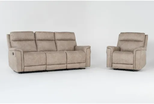 Caspian Beige 4 Piece Manual Reclining Modular Sofa And Recliner Set brings relaxed, family-friendly seating to the living room with soft beige upholstery and a natural toned presence that layers easily with warm woods and textured rugs. The four-piece modular layout offers flexible configurations with a reversible orientation so you can tailor the plan to your room and routines. Plush foam cushions wrapped in dacron provide a supportive yet cozy seat that holds its shape through movie nights and everyday lounging. Padded track arms and a tight back silhouette keep the profile tidy while still feeling inviting. Manual reclining mechanisms operate smoothly and the wall hugger feature uses an engineered pivot to limit rear travel during recline, preserving usable floor space. Durable fabric upholstery with a cotton blend lining makes routine care straightforward, while reinforced frames and full-depth seating support deliver lasting structural integrity for everyday use. This modular reclining set answers modern living room furniture needs with theater-style comfort and durable upholstery that works for family life. It also serves as a small space solution that reconfigures easily for conversation, movie nights, or larger gatherings.