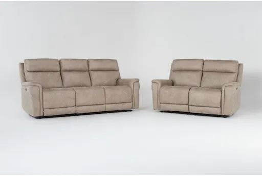 The Caspian Beige 156" 5 Piece Power Reclining Modular Sofa and Loveseat Set is a perfect addition to your living room. Designed for relaxation and convenience, it features power reclining capabilities and built-in USB ports for easy device charging. The tight back design and fabric upholstery offer both comfort and durability. 5-piece set with power reclining function. Includes USB ports for convenient charging. Durable fabric upholstery in a soft beige color.