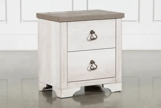 The Cassie White 25" 2-Drawer Nightstand brings classic farmhouse character to small bedrooms without overpowering the space. Finished in soft white with a subtle grey-washed wood grain, its narrow profile fits easily beside beds while still providing a stable surface for a lamp or a stack of books. Two full-width drawers keep bedside essentials organized and out of sight, and the bun feet and soft-edge top give the piece a timeless, approachable silhouette. This nightstand is a smart small space solution that mixes cottage charm with practical storage for everyday use.