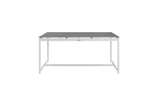 Elevate your outdoor dining experience with the Catal White 63" Rectangle Stone Top + Metal Base Outdoor Dining Table with Teak Accent. This modern dining table features a sleek white color and a combination of durable materials including aluminum, stone, and teak. Perfect for any outdoor setting, it comfortably seats six people, making it ideal for gatherings and meals under the sun.