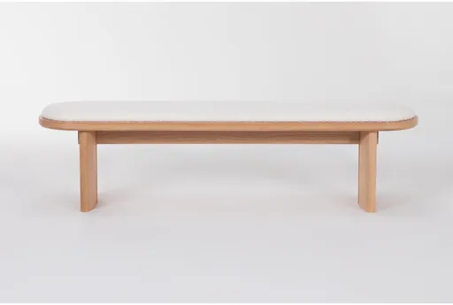 Introducing the Catania Natural Modern Oak 70" Oval Dining Bench, a versatile piece perfect for your dining room or entryway. The Scandinavian-inspired design combines natural wood tones with contemporary curves, creating a stylish and functional seating option. Backless design enhances the minimalist aesthetic. Curved shape provides a modern touch. Constructed from solid oak and oak veneer for durability.