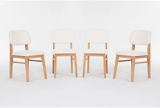 Enhance your dining experience with the Catania Natural Modern Oak Wood + White Boucle Dining Chair Set of 4. These armless chairs feature a curved back for added comfort and style, making them a perfect addition to any dining room or kitchen. The combination of natural rubberwood and performance boucle fabric creates a sophisticated yet cozy atmosphere. Set of 4 armless dining chairs with curved backs. Constructed from natural rubberwood and white boucle fabric. Ideal for dining rooms and kitchens with a Scandinavian design.