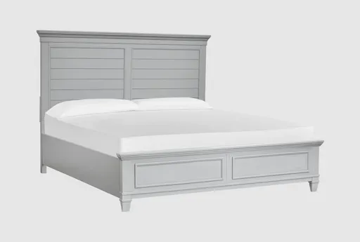 Introducing the Catherine Grey California King Wood Panel Bed, a perfect addition to your coastal-inspired bedroom. This bed features a beautiful harbor grey finish that complements any decor. Made from MDF and solid Asian hardwood, it ensures durability and style.