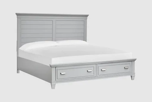 The Catherine Grey Queen Storage Bed is a coastal-style bed designed for the bedroom. Its harbor gray color and Asian hardwood material make it a stylish and durable addition to any home. Features bolt-on rails for added stability. Includes slats with support legs for enhanced comfort. Comes with floor protectors to prevent damage to your flooring.
