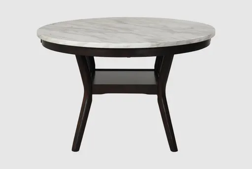 Celeste Brown Wood 48-inch Faux Marble Round Dining Table brings a traditional presence and thoughtful function to kitchen and dining room spaces. A smooth faux marble top provides a durable serving surface that wipes clean and reads like natural marble while the wood base with tapered legs and block-style shelf adds structural integrity and a refined two tone contrast between brown and natural. The 48 inch round shape comfortably seats four and makes this table a practical small space solution for apartments, condos and breakfast nooks. Polished edge detailing and an open lower shelf keep the silhouette classic while providing convenient surface display and accessible serving storage.