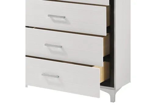 The Celia White Wood 5-Drawer Chest is a stylish and functional addition to any bedroom. Its modern design and white finish create a clean and fresh look, perfect for contemporary spaces. With five spacious drawers, this chest provides ample storage for all your essentials.