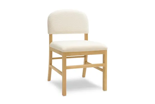 Chabwick Cream Performance Velvet Dining Chair pairs soft performance velvet upholstery with a clean Scandinavian silhouette, making it a comfortable, practical choice for everyday dining. The padded seat and gently curved back support good posture during meals, while the light wood frame and stretcher provide stability. Upholstered in performance velvet (100% polyester), it wipes clean easily for low-maintenance care.