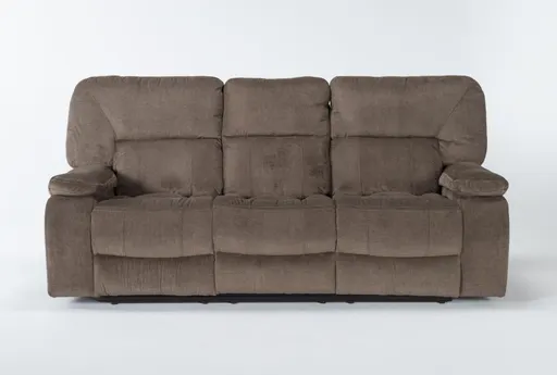Experience maximum comfort and relaxation with the Chadrick Brown Polyester 86" Manual Triple Reclining Sofa. Designed in a casual style, this sofa in a rich Kona color is perfect for any living room. Upholstered in a high-performance fabric blend of polyester and nylon, it promises durability and a cozy feel.
